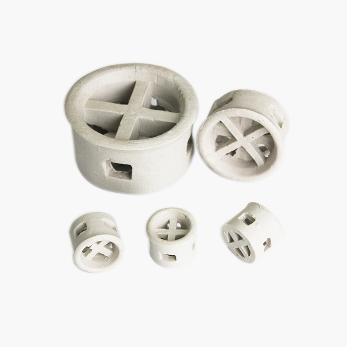 陶瓷阶梯环吸收了短拉西环的特点,也改变了填料的环高与直径相等的习惯,降低了环的高度,减薄了材质的厚度,并在环的侧端增加了翻边。