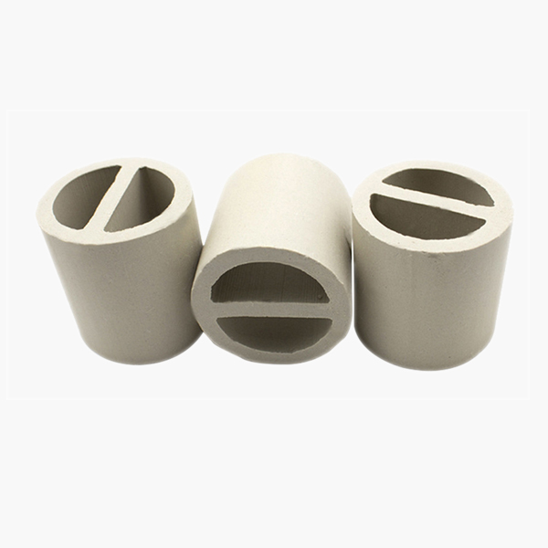 陶瓷一字环又被称之为陶瓷勒辛环。它是在拉西环原有基础上基于增加填料的比表 面积和强化传质效率的想法之上在其中间加入像汉字一的一般的隔板而设计出来的。形象化地称它为一字环。陶瓷一字环是由陶瓷拉西环改良形成,比陶瓷拉西环有更大比表面积和更好的抗压强度,拥有优异的耐酸和耐热性,能够并且能耐除氢氟酸以外的各种无机酸、有机酸及有机溶剂的腐蚀,并能够在高温或者低温的环境下使用,因此其使用范围非常广泛。