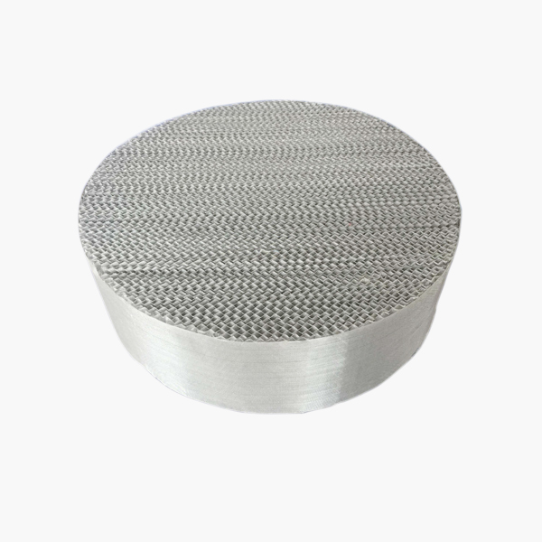 金属丝网填料是目前世界各国应用比较广泛的高效填料,它是由若干平行直列的金属波纹网片排列组成的圆盘状填料。它具有比表面积大、孔隙率大、重量轻;气相通路倾角小、有规则、压降低;径向扩散良好、气体接触充分等特点。